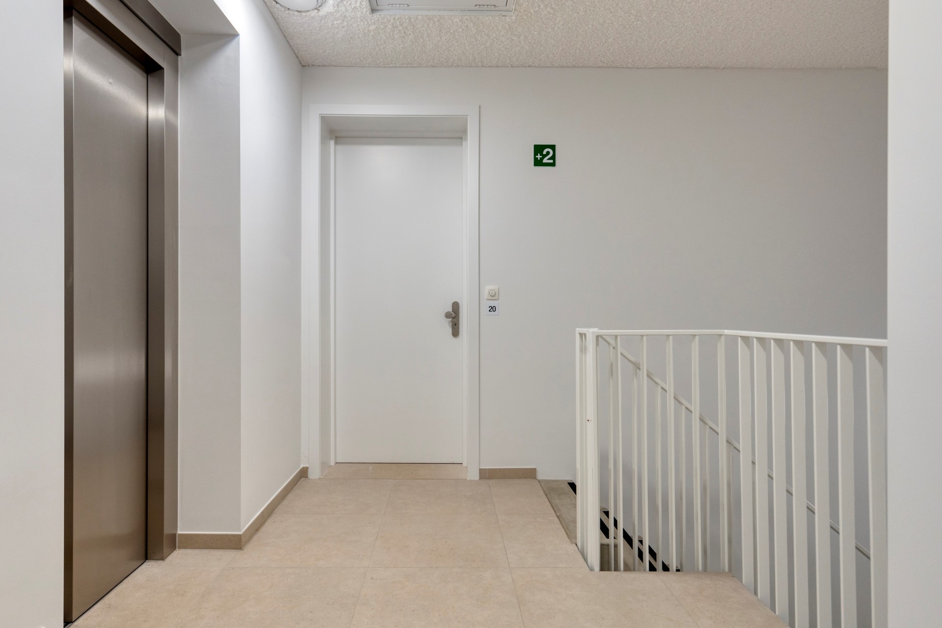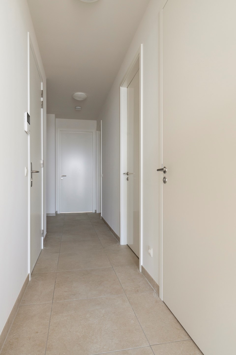 Via de centrale hal bereik je alle ruimtes van dit modern afgewerkte appartement: