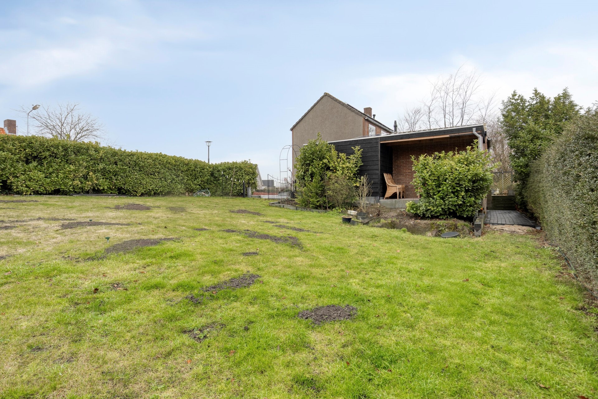 De woning beschikt over een ruime, zonnige tuin met sproeisysteem en grondwaterpomp, waar je de hele dag van de zon kunt genieten. Aan de achterzijde bevindt zich een fijn terras waar je in alle rust kunt ontspannen, met een prachtig vrij uitzicht over de polder. Daarnaast zijn er een garage en een schuurtje voor fietsen, wat zorgt voor volop praktische ruimte.