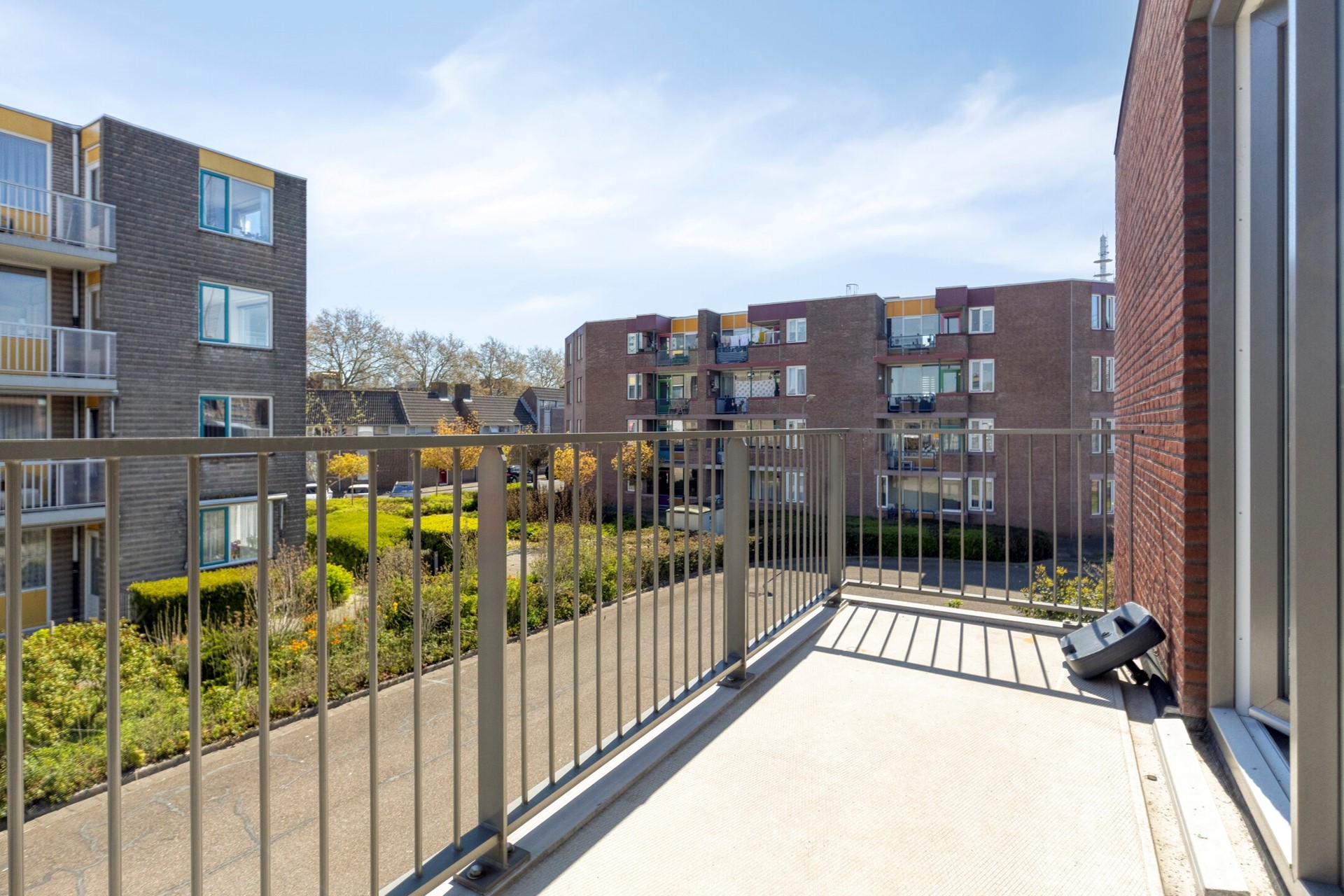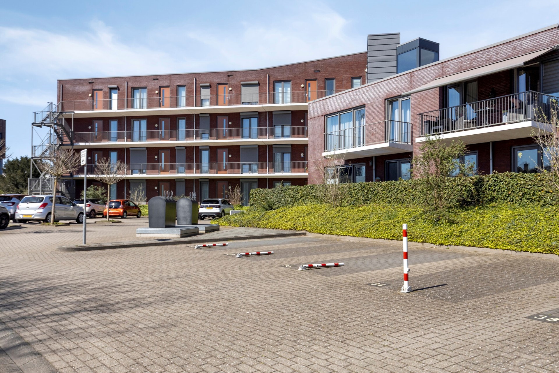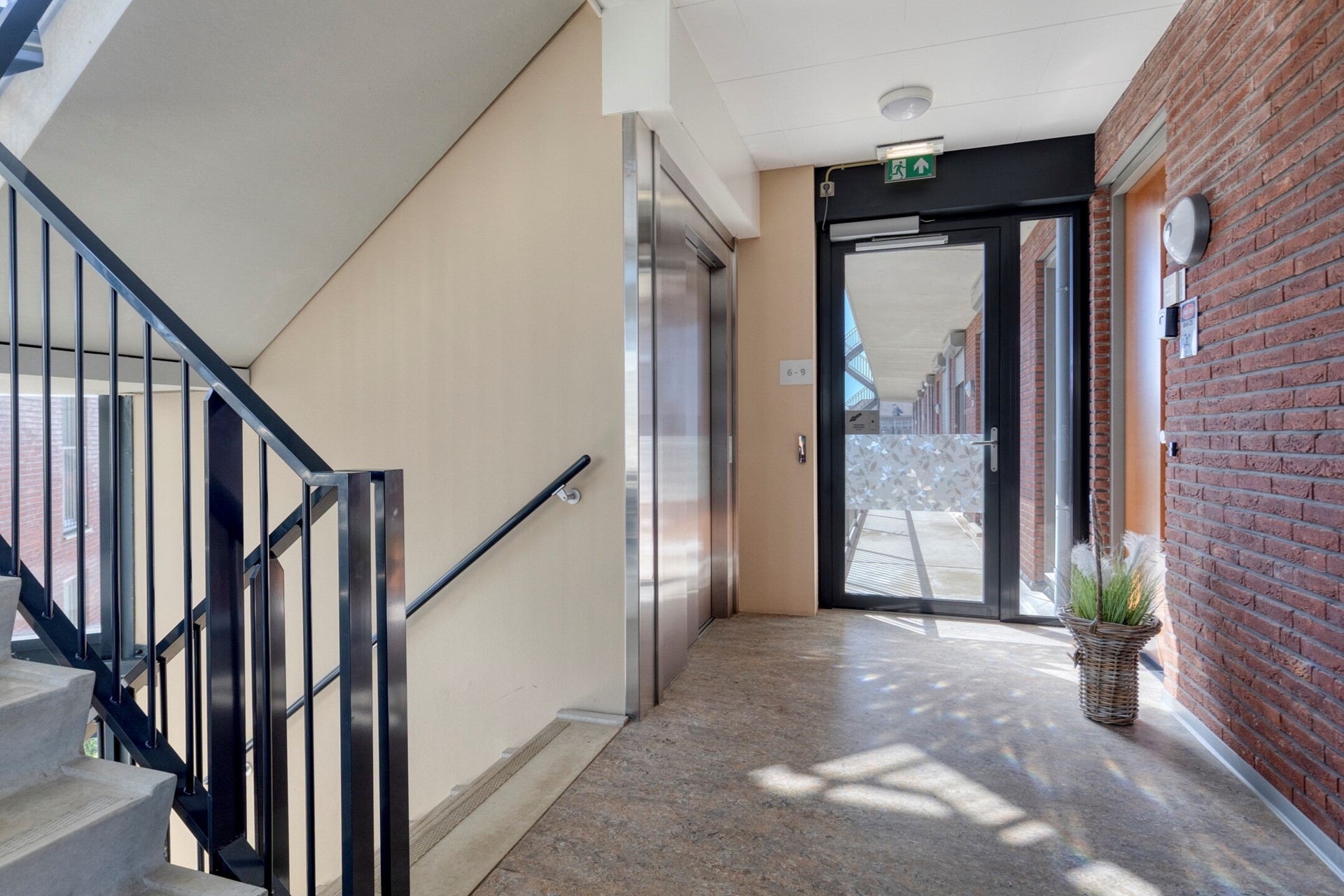 Het complex is te betreden via de hoofdingang, en beschikt over een lift maar je kunt ook via de achterzijde bijvoorbeeld met je fiets veilig het hekwerk door en je fiets opbergen in een gezamenlijke fietsenberging en vervolgens met de trap via het gemeenschappelijk buitenterras naar de woning.