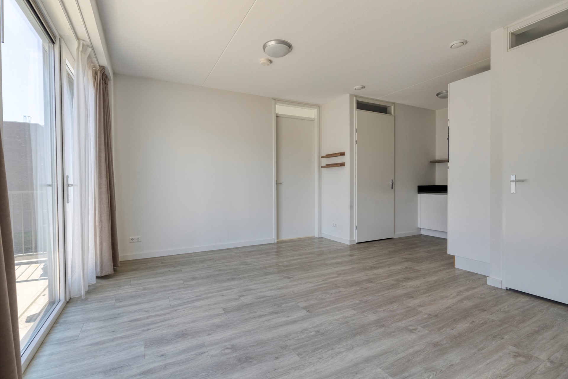 Bij binnenkomst treft u de entree met meterkast en toegang tot de woonkamer. De lichte woonkamer met open keuken vormt het hart van het appartement en geeft toegang tot het balkon. De keuken is voorzien van diverse inbouwapparatuur. Daarnaast beschikt het appartement over een inpandige ruime berging met CV-ketel en mechanische ventilatie.